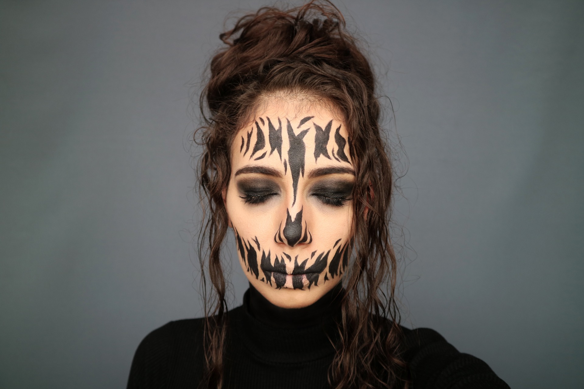Não se desesperem, porque hoje trago-vos uma sugestão de maquilhagem para o Halloween, que tanto dá para homem como para mulher. É uma espécie de caveira, que em vez de ter a estrutura dos dentes e ossos, tem, ao que eu lhes chamei, chamas pretas.